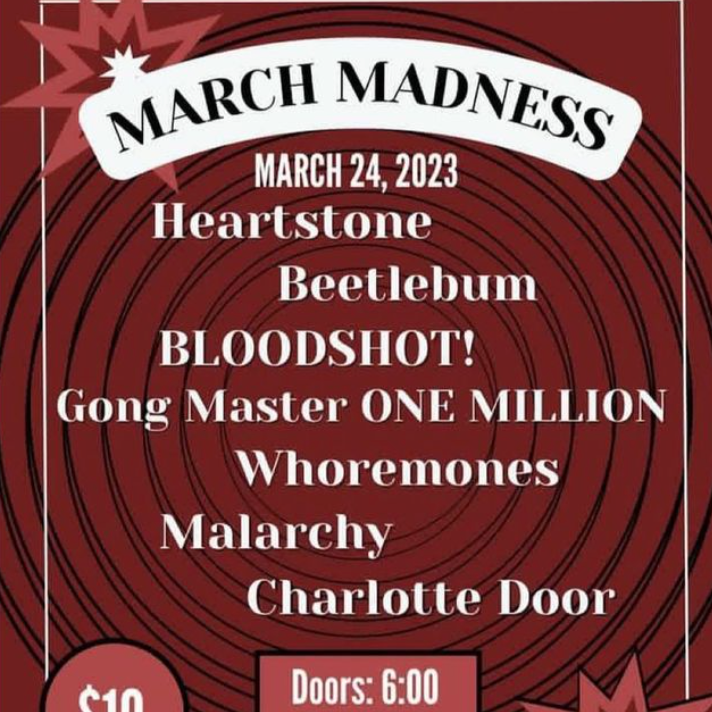 Heartstone, Beetlebum, Bloodshot, Gong Master One Million, Whoremones, Malarchy, Charlotte Door [doors at 6pm]